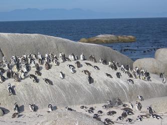 None of these penguins are in my family tree, as far as I know. There were some nesting in bushes, however, which is unusual for penguins. This colony is on the shores of False Bay, South Africa.