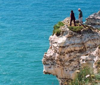 We have just completed a week in Normandy, and this might be considered to be the high point: Dot and Dave on one of the Etretat pinnacles reached by a narrow path from the main cliff. Julia and I declined the challenge as we both have a desire to jump off high things. The exposure was if anything worse than it looks here.