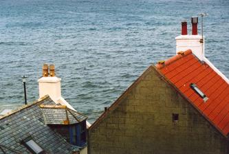 29 Aug 163.3 (just over 1) Mild with high cloud to start with, so drove to Pennan, where weather turned for worse and rain started. Unknown to us, Pennan had been hit by mudslides a couple of weeks earlier and many of the people were evacuated. Saw mud being cleared away. Inn closed: landlord had moved to Canada. High tide spraying water on to quay. Left in search of food and eventually ended up at Boyndie, a visitor centre beyond Banff staffed partly by disabled people. Had tea and excellent rock cakes, but it was still raining. Home via Keith and Dufftown and found roadside inn that Dot and I remembered independently from years back. I had thought it was something I’d seen in a dream. Didn’t stop. I don’t know why. Oh yes I do: we were headed for the Green Inn again.
