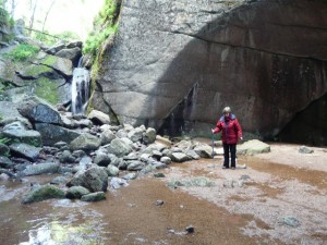 Heavy rain early (before I got up) but then surprisingly dry and sunny, though with a chill wind. Did the seven bridges walk, and Julia checked the number. Included the secret lochan, so it worked out at just over six miles, and we were all feeling pretty tired at the end. This didn’t prevent the Evetts continuing into town to buy some extra food for lunch, wile Dot and I flaked out for a few minutes before setting the table. After lunch Dot and Julia went shopping while Dave and I first picked up his picture from the framer, Jay Hart, then continued to the Burn O’ Vat, where the visitor centre had been vastly improved. Dave impressed by the Vat itself, and we walked up to a precarious point on top before walking on the other side of the road in a vain attempt to reach the loch (we were getting pretty tired in view of our morning exertions). Returned home to find Julia had bought quite a few things, and I had to go back to Byzantium tomorrow to see Dot try on a skirt. We ended the day with fish and chips and a battered Mars bar (oh yes we did), followed by a bit of bridge and Take Two.