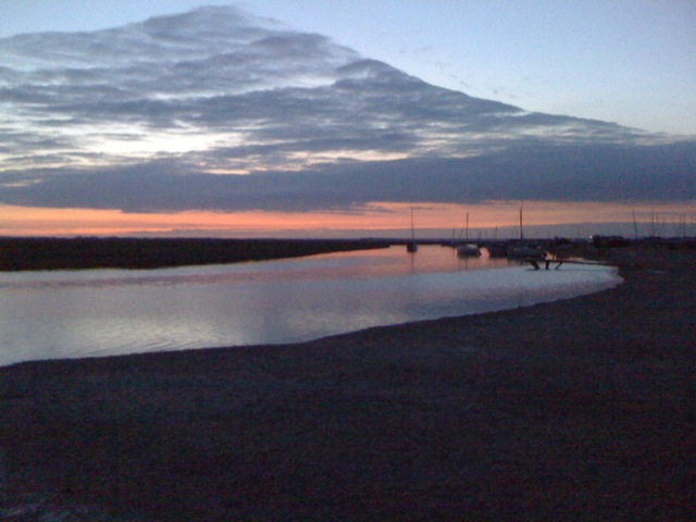 Much better night, but Sunday was a very wet day. After breakfast we walked into Blakeney, and Dot bought two necklaces and some garden hooks before we were rejected by one restaurant (“preparing for Sunday lunch”) and found ourselves in the Blakeney Hotel again – downstairs in the Boat Room this time, with tea and coffee. Impressed by decor. Then on to Binham, where we lunched at The Chequers before embarking on a 4-mile circular walk in the continuing steady rain. Ended up at the Priory (once owned by the Pastons): quick look round the ruins, then to Memorial Hall for tea and scones. Was not going to buy any books from sale, but others lingered, so I did. One a copy signed by the author with personal comments, so could be valuable. Back at hotel I found I’d missed a call from David, so drove up the esker where I got good reception and had a Father’s Day conversation with him while he turned the mattress (well, he stopped turning the mattress while we talked…) Another good evening meal, and after drinks three of us (Dot, Dave and me) walked down to the front to look at the high tide. Beautiful evening: took picture with my iPhone.