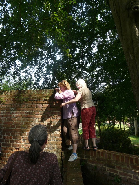 Wednesday was good, too. It was a beautifully warm day, and a group of poets and artists walked around Oxnead to get a flavour of one of the most impressive of the Pastons’ residences. Or at least the location of it. The modern version is currently being transformed into a wedding and concert venue, according to the workmen we spoke to. But the setting is fantastic, and the tiny Oxnead Church has a lot of fascinating stuff in it, though it has been “badly messed about”, according to Teri, the stained-glass artist and architectural student I gave a lift to. Others present: Kay Riggs, who organised it; Carole Gilfillan; Kit Price-Moss; Adrian Ward; and Rob Knee. The poets amonog us agreed afterwards to try to write three new poems (at least) by the beginning of September, with the aim of producing a book by Dragon Hall time – the beginning of November. Teri cam in for a drink, and we were joined by Mary from next door, for whom I had taken in a parcel. Opportunity to point out a wasps’ nest in their gutter.