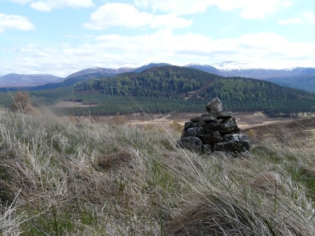 We leave today – and it’s snowing. Not lying, but a steady downfall of snowflakes from a leaden sky. Yesterday was rather better, though still very cold in the wind later on. In the morning I climbed Craigendarroch by a different route, following the circular path into the Pass of Ballater first. Dot was in town shopping, and I could see her (and she me) from the top. Descended by a new route on the timeshare side that proved very quick.