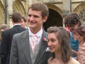 But that’s not why Friday was brilliant. That was down to Anandi’s wedding at the Cathedral, which was a one-off. Not that it was perfect: the sermon was too long, we couldn’t see clearly, and we had difficulty hearing the speeches at the reception because Blackfriars Hall has lousy acoustics. But it was a fine day and it all had a lovely naturalness and simplicity – for instance, the bride and groom walked from the cathedral to Blackfriars. After the service we had champagne and nibbles in the cloisters for quite a long time: lots of people from St Augustine’s were there, but only Dot and I (plus the vicar and his wife) were invited to the reception. In the cloisters we had music from an a cappella group which had appeared on TV but which was composed mainly of friends of the groom – who sang a little bit as a tribute to his wife! Both Anandi and her new husband Dave are so likeable it’s frightening.