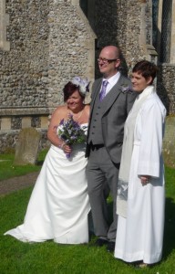 Debbie and Neil with (the Rev) Heather Cracknell, who took the service