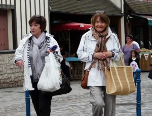 Thursday was my birthday – and for the third year running I was not at home. I was 67, and it was the worst day of the holiday for weather. We took the bus to Honfleur and had a nice birthday meal in a restaurant there, sitting next to the guy who created fruits de mer. Entertaining, but I had duck. It started raining while we were eating, and didn’t stop. Afterwards we wondered round the harbour, and Dot bought a top, then Dave and I walked up by the harbour and towards the sea, then through the Garden of Personalities (busts of Francoise Sagain and others) while Dot and Julia continued shopping.