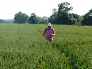 Dave negotiates passage through a soggy cornfield on the way back from Baconsthorpe