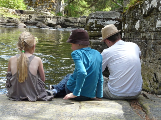 Still very warm. everyone pretty tired, so had a quieter day. Mooched around town, including Larks Gallery and cycle and sweet shop before arriving at new corner cafe for very good lunch. Later in the afternoon Barbara, Roger, David and Oliver walked out on cycle path towards Cambus O’May while I took Dot, Chrissy and Amy there by car. Very crowded, boys jumping off bridge etc, and distance was more than I had thought, so Dot, Chrissy and Amy started walking back. I found a layby where path came to road and amazingly proved to be almost exactly where the two parties met. All hot, so I gave lefts home in shifts to all except Barbara, who hurtled back on her own, setting a new world record for a cross between walking and running. In the evening had a fantastic meal at the Glen Lui. Drinks outside followed by meal in room on our own, and excellent service. It doesn’t get any better.