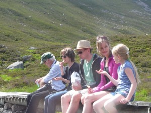 Roger, Barbara, David, Chrissy, Amy at the far end of Loch Muick