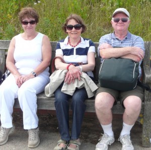 Halfway through the Sunday walk, Dot, Julia and Dave pause to take in the sun on the path near Wells quay