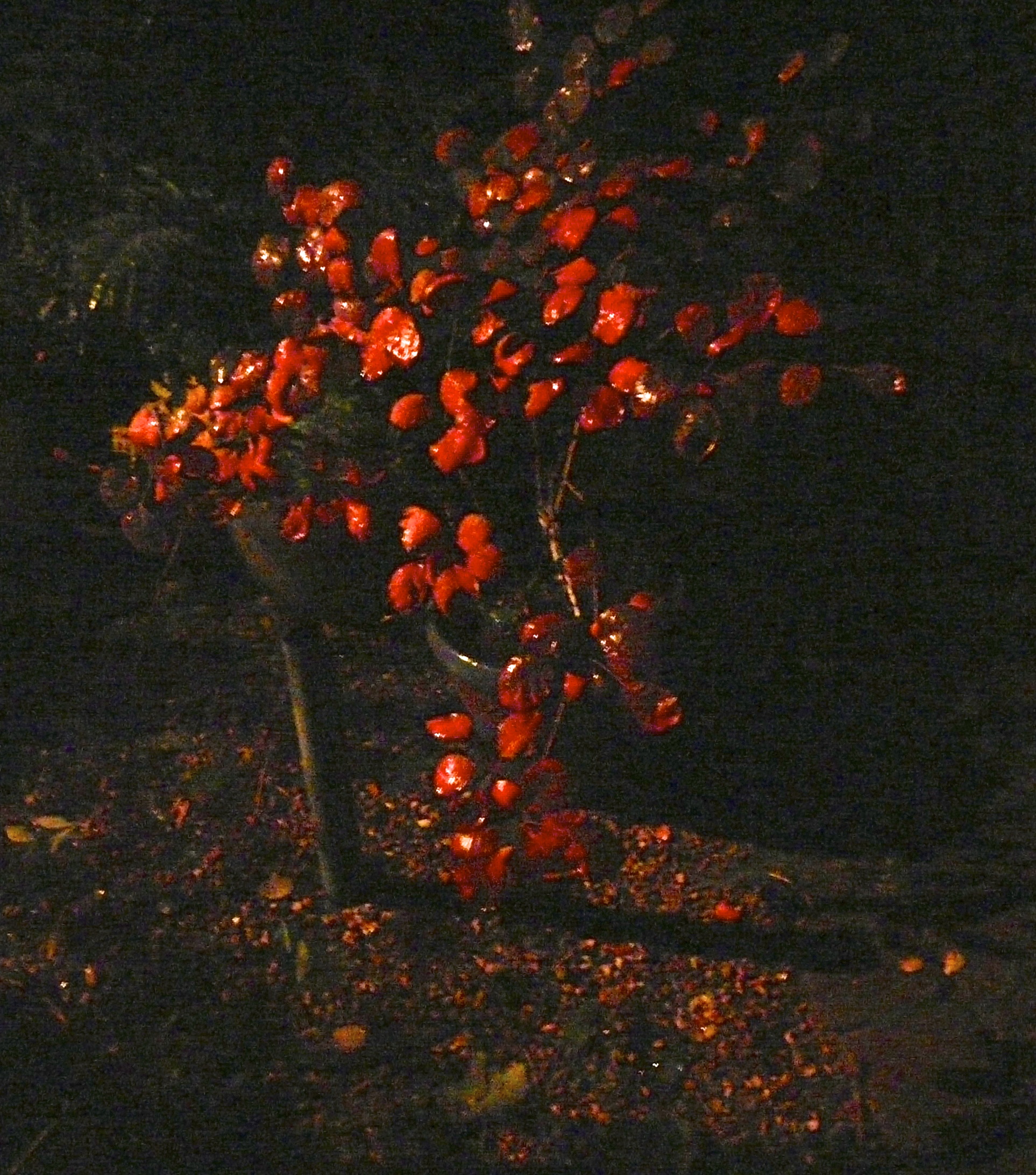 One of our plants (cotinus) illuminated at night by light from kitchen: photo slightly enhanced
