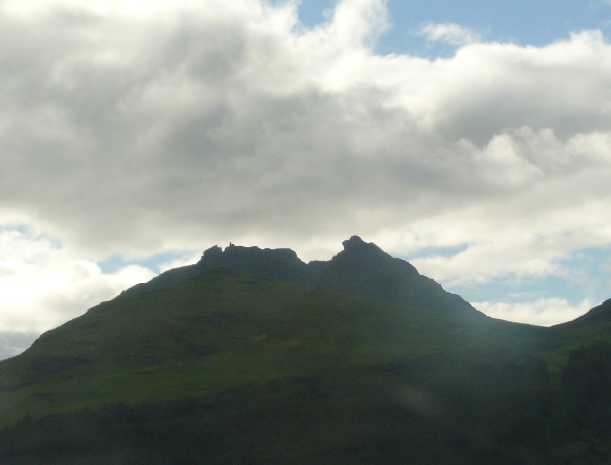 The Cobbler (Ben Arthur) seen from the train between Oban and Glasgow. Dot and I climbed it on our honeymoon.