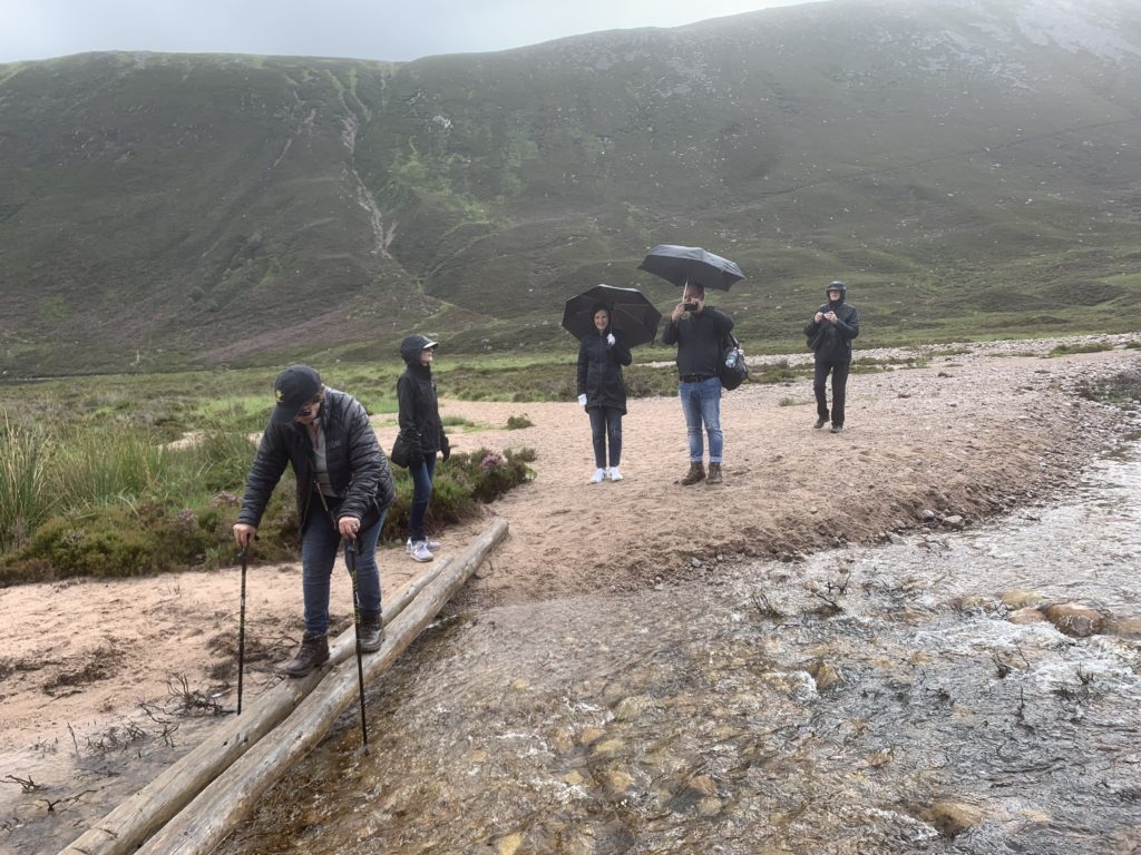 Tuesday 13th: We all walked round Loch Muick, which I measured as 9 miles. Quite surprised that I could still walk that far. Struggled towards the end. Weather mixed – warm sun, cold wind, showers. Water high: had to cross stream on logs at other end of loch and encountered midges. Aargh! We had trouble parking initially: it was a tight squeeze, and I was a bit nervous, but the car was OK. The others went out for coffee immediately afterwards, but I had a bath. Had trouble keeping awake. After Roger made us omelettes, we watched Big Fish, which I thought was an excellent film. Managed 20,000 steps today.