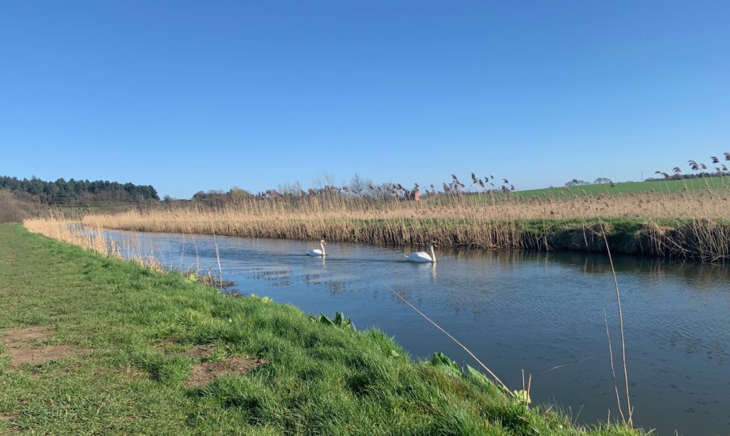 The current chilliness, though seasonal enough, contrasts sharply with the beginning of the week. Monday was pleasantly warm and sunny, and we drove to North Walsham, called at Sainsbury’s to buy flowers and proceeded to the cemetery. From there we went to Ebridge Mill, and walked along the North Walsham and Dilham Canal for a bit over half a mile. Very pleasant indeed. There was a lot of traffic on the roads, and hold-ups on the way home, but we got back just in time to have tea in the street with the neighbours, restricting ourselves to groups of six or less. I spoke to Jonathan and Mark, who has a badly injured knee following an accident in the States, and is going to haven operation very soon at Spire. I was tired after our walk, but cooked salmon, and later we watched the new Line of Duty, which is as mysterious and entertaining as always.