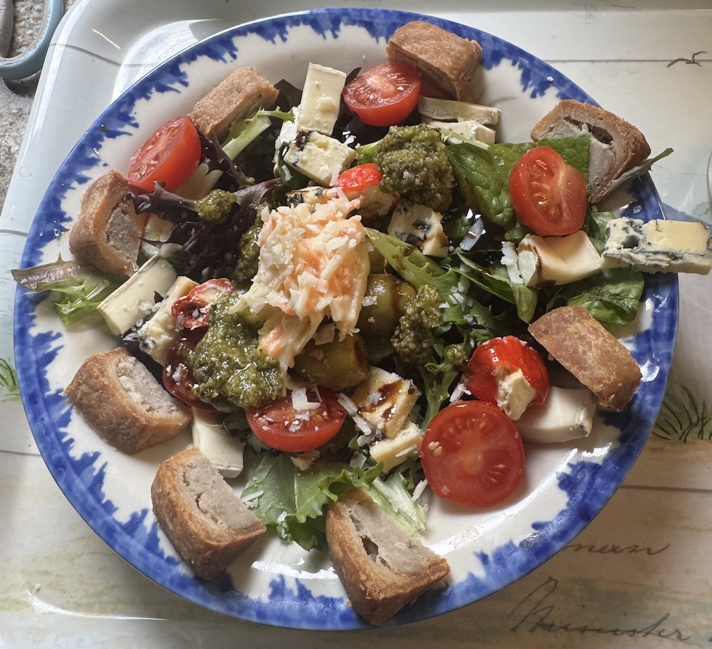 Thursday – Warm and dry but a little windy. Very quiet. Dot did some work in the garden. I gradually improved healthwise through the day and risked not taking my final paracetamol. Tidied my room up in the afternoon and chose some hymns for Sunday (after sleeping for a while post-prandially). We have new harder pillows – well we’ve had them for a while but not used them. They seem good. Bridget came to clean about 4pm – seemed very perky and full of ideas. Des brought us fish and chips at 7pm, and we watched a couple more episodes of Clarkson’s Farm. I walked over to the station to get cash out and somehow, with a little indoor walking, brought up the 4000.