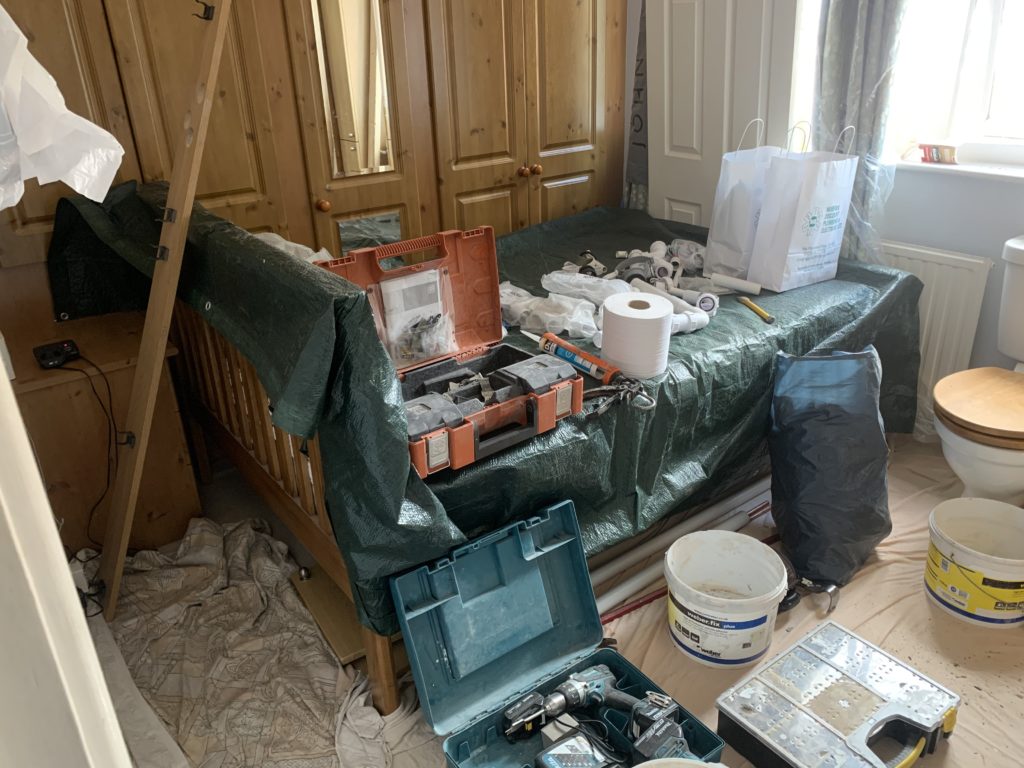 Robin arrived at 8am on Tuesday and started work on the cistern in the bathroom. By the end of the day (or was it the next?) he had it fixed, as well as the one downstairs. They had started to leak water into the pan, and the upstairs one had some broken bits inside. He is now (Thursday) well into the shower room and has relaid the floor. He managed to get away without removing the fitted cupboards, which is good, and he has also taken out the bidet, which will give Dot more room. He seems very thorough. Dot has ordered some flooring from Dovetail, and it will be fitted by them when Robin has finished.