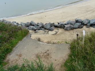 Anyway we found ourselves in the Castle Museum instead. Then after lunch Dot visited a school at Corton and I took Andrew to Barton Broad, which promised more than it delivered, then on to Walcott, where we got an ice cream, and Happisburgh, where we surveyed the recent surge damage and walked along the cliffs to see where the path had fallen into the sea.